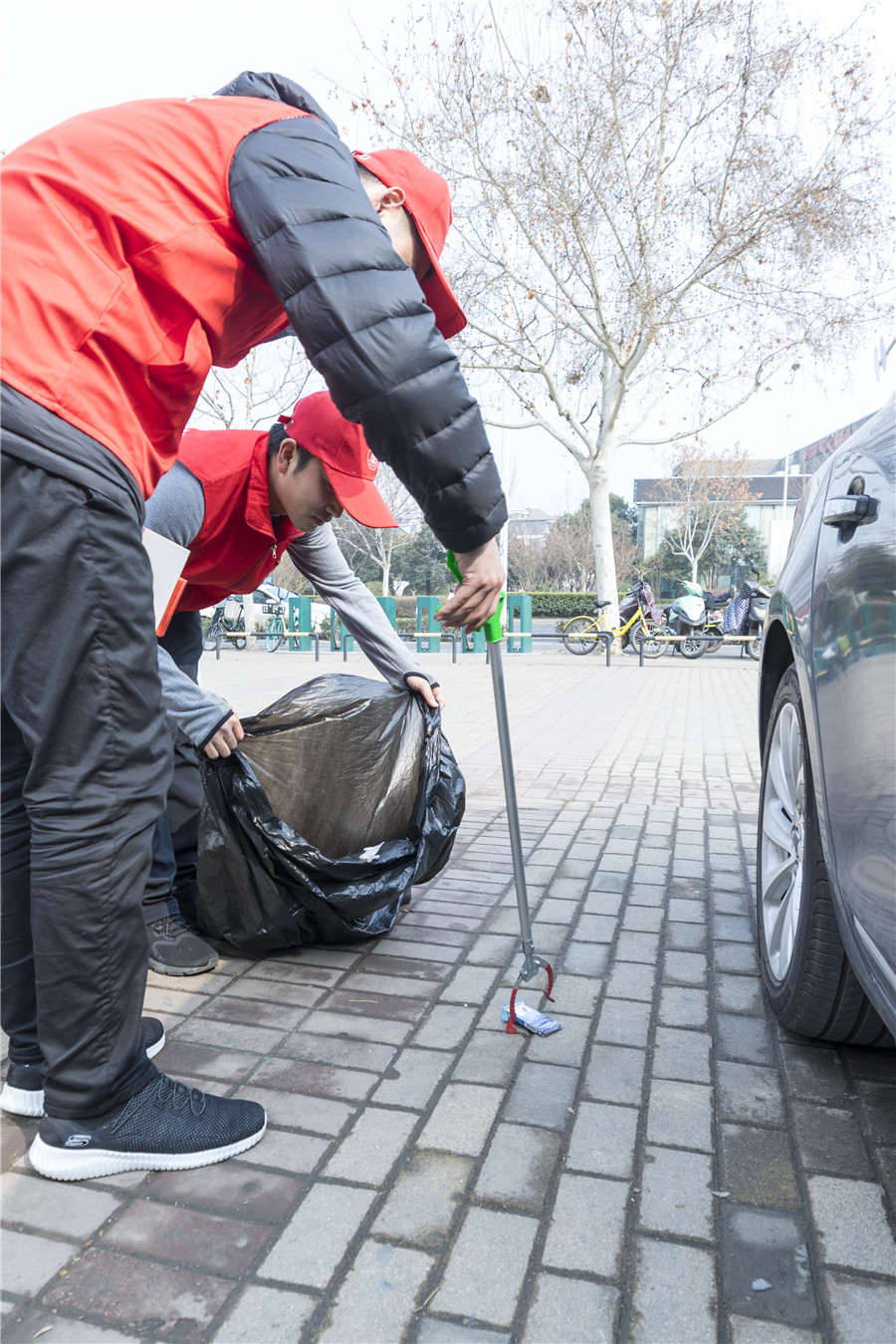 結(jié)合志愿服務(wù)與“路長(zhǎng)制”工作。集團(tuán)的黨員志愿者在活動(dòng)儀式后,開展撿拾煙頭、白色垃圾,文明規(guī)整共享單車等行動(dòng)。