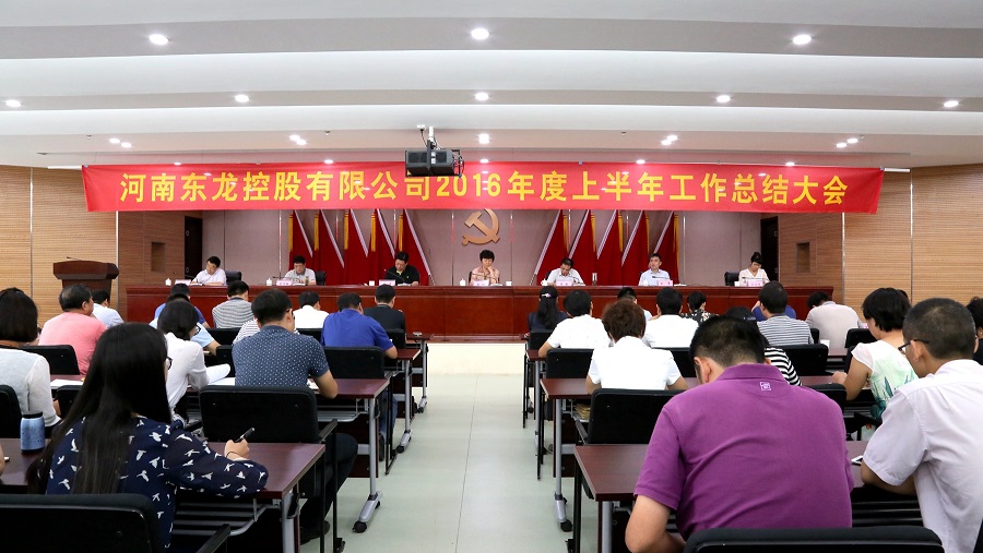 8月3日下午15:00,河南東龍控股有限公司在東龍大廈3樓會議室召開2016年度上半年度工作總結大會,公司董事長郭枋、總經理陳敏及其他領導班子成員出席了會議。公司本部、各項目部、河南東越市政工程有限公司等150余人參加了會議,會議由張奇副總經理主持。