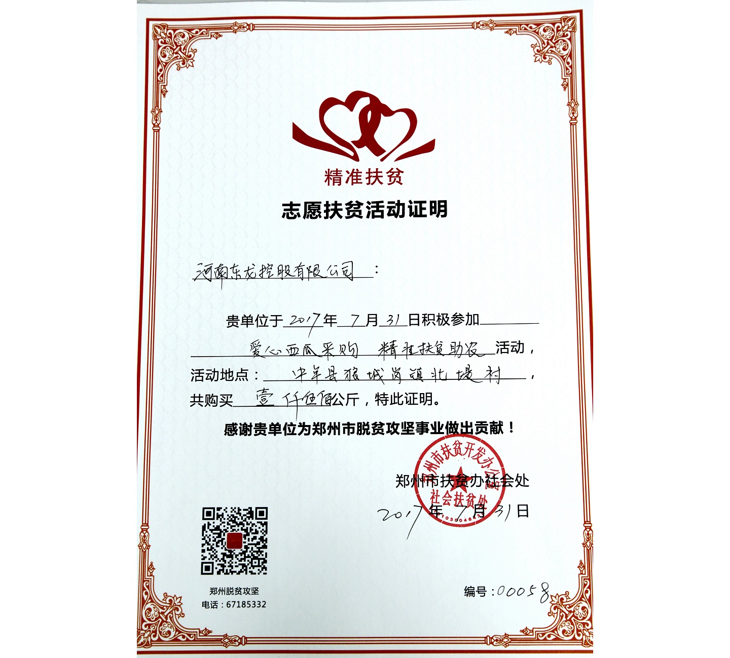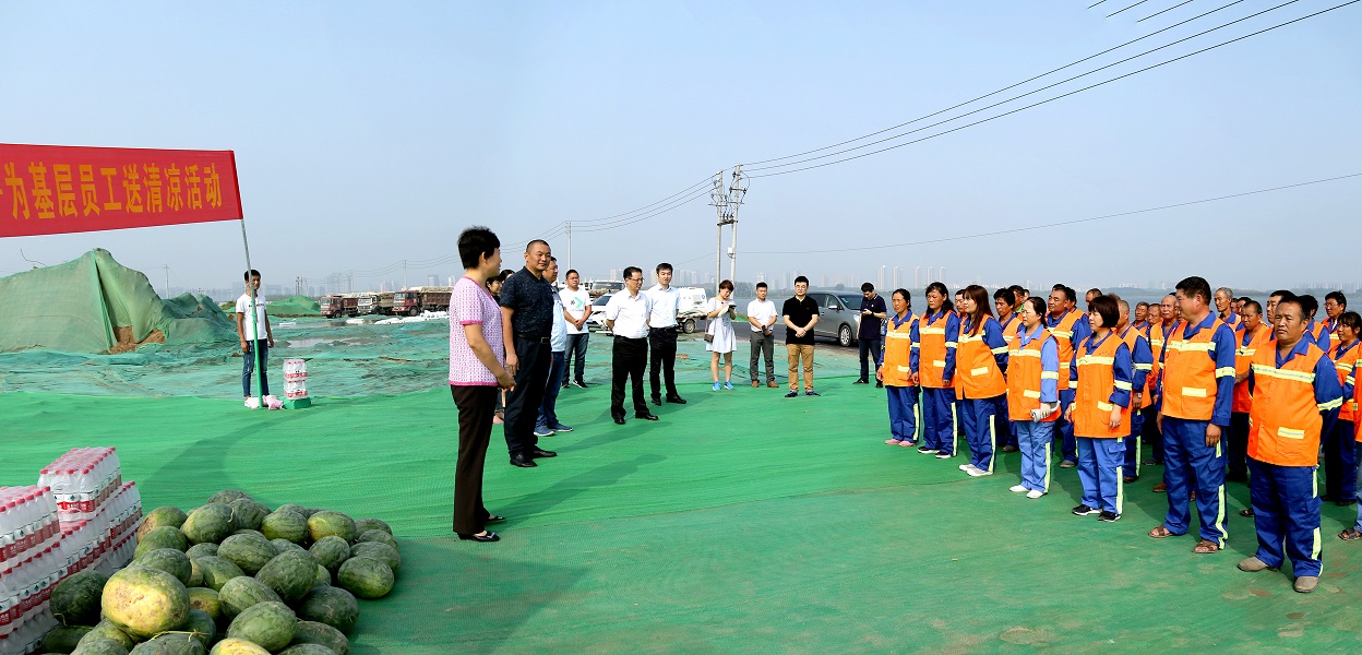 2017年8月3日上午,驕陽似火,在公司黨總支部書記郭枋同志的帶領下,公司高管及黨員代表深入基層項目部,給奮戰在一線高溫環境下的項目部人員及環衛工人,送去了冰紅茶、藿香正氣水、西瓜、水等避暑物資。其中,共認購中牟縣愛心西瓜3000斤,通過實際行動助力精準扶貧助農攻堅。