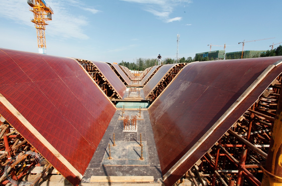 由于該橋一聯長度為253米,布置通長鋼束預應力損失過大,對結構受力不利,所以在主梁施工時采取分段施工、分段張拉的施工方案,全橋主梁共分三部分施工,部分預應力亦采用分段張拉,且利用連接器連接,確保橋梁順利完工。同時,龍湖內環跨龍尾河橋作為景觀橋梁,V構造型工藝復雜,對施工技術要求高,東龍公司QC小組攻堅克難,獲得河南省市政公用協會頒發的2016年度河南省市政公用工程建設小組二等獎。